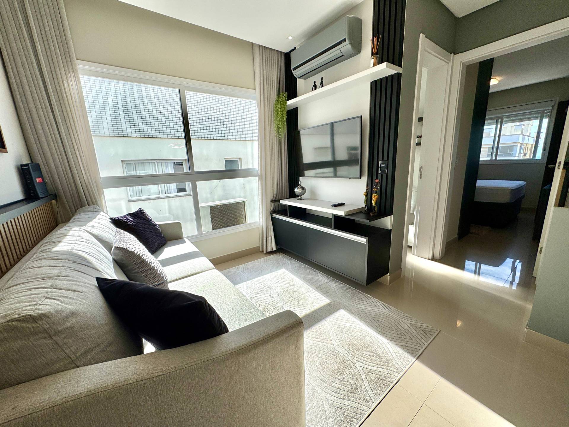 Apartamento de um dormitório, banheiro social, mobilado e decorado, churrasqueira, gas central, hidrômetro individual, piso porcelanato, posição solar leste norte, área de serviço separada, edifício novo, hall decorado, zeladoria permanente, apenas duas quadras do mar. Agende agora uma visita com um de nossos corretores!