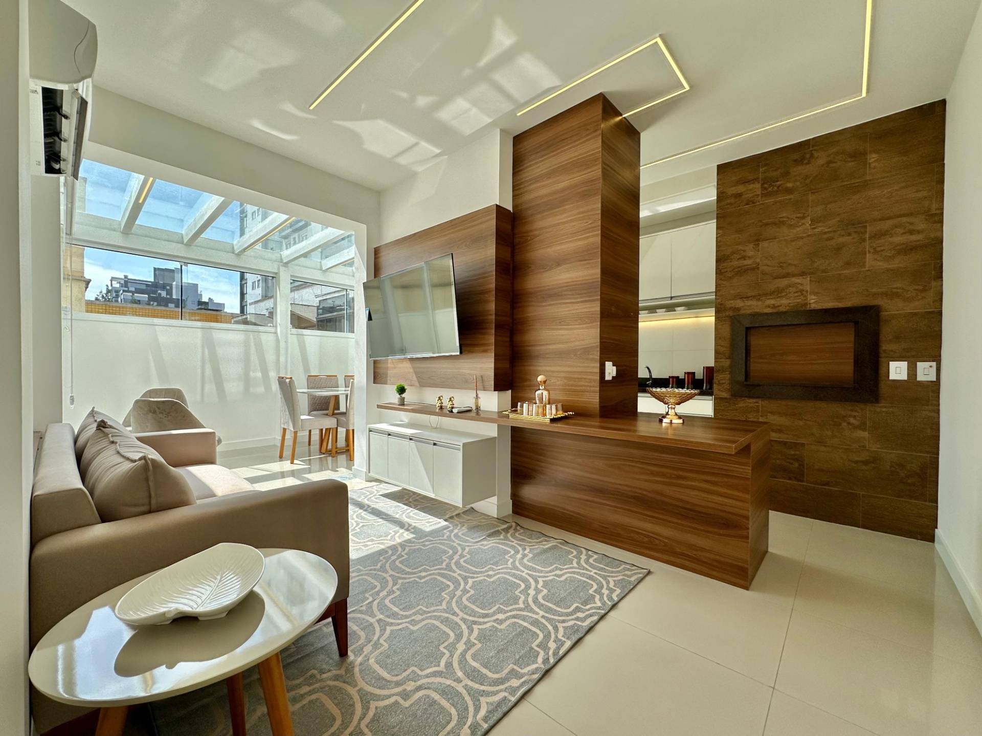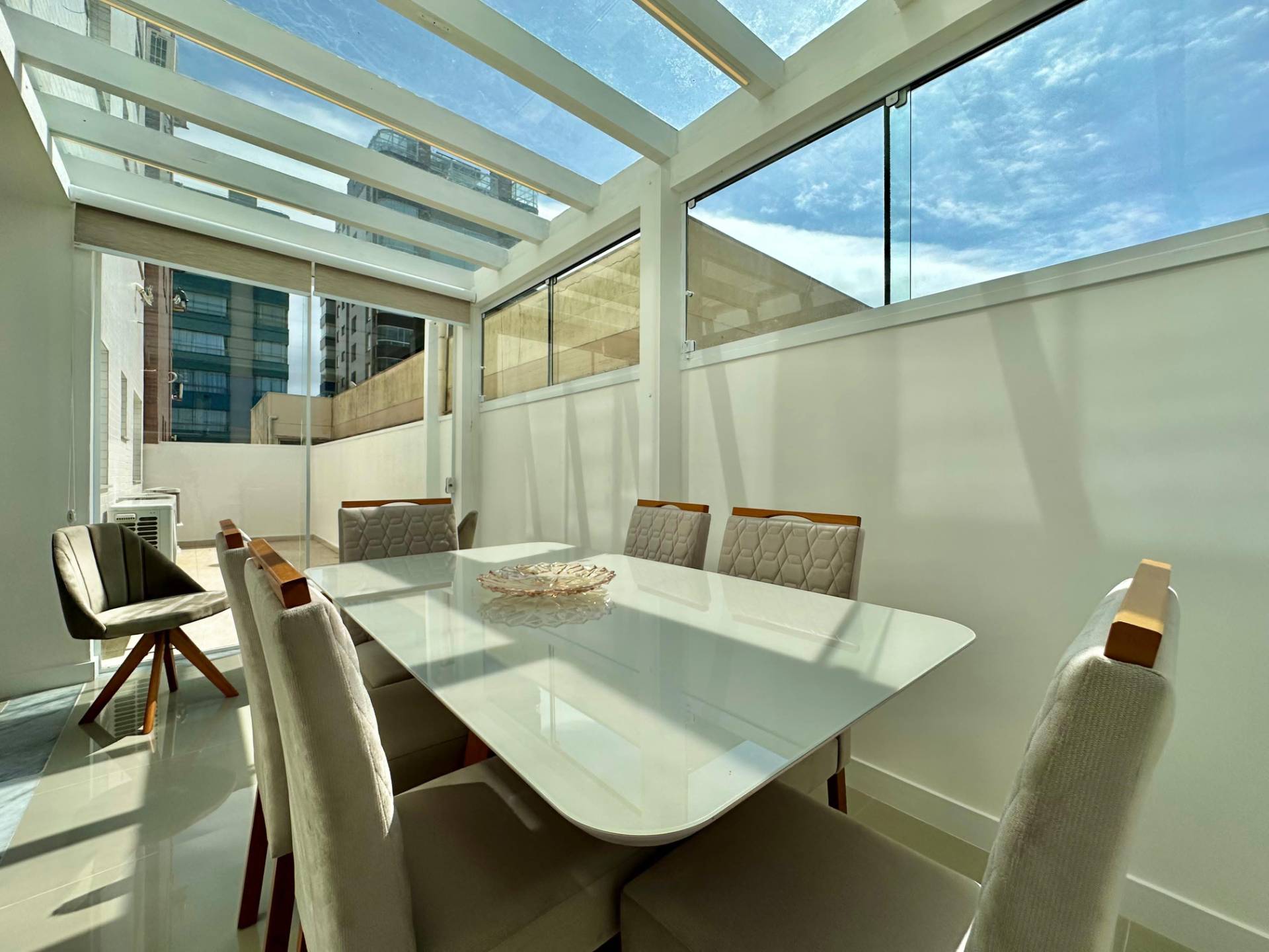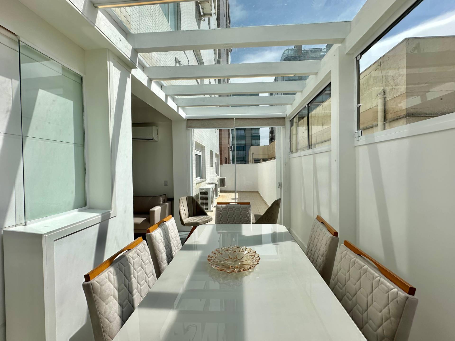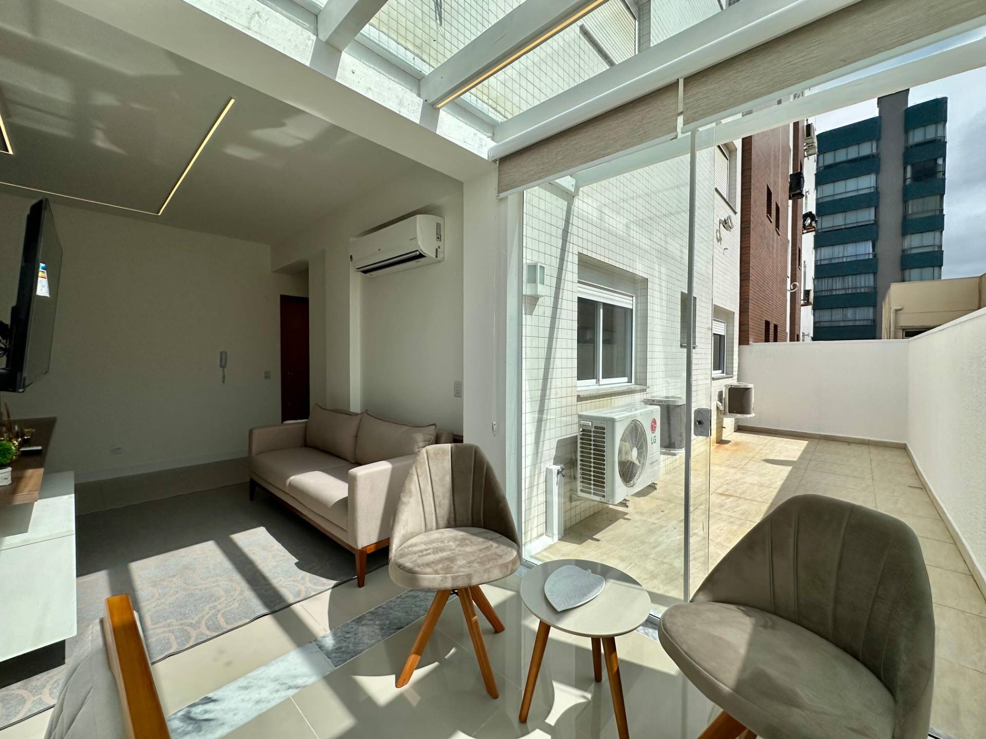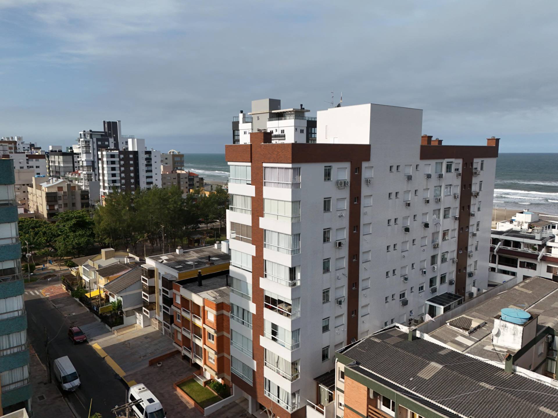 Terraço enorme, completamente mobiliado e decorado! Composto por 2 dormitórios, sendo 1 suíte, banheiro social, amplo living 2 ambientes, churrasqueira, cozinha americana, área de serviços e 1 box de estacionamento. Apartamento mobiliado, pronto para veranear/morar! Edifício de alto padrão, hall de entrada decorado, elevador, gás central, hidrômetro individual, porteiro eletrônico e zeladoria permanente. Localizado no bairro Zona Nova, junto a 2 Praças (Flávio Boianovski e Camelôs) e a apenas 1 quadra da praia.