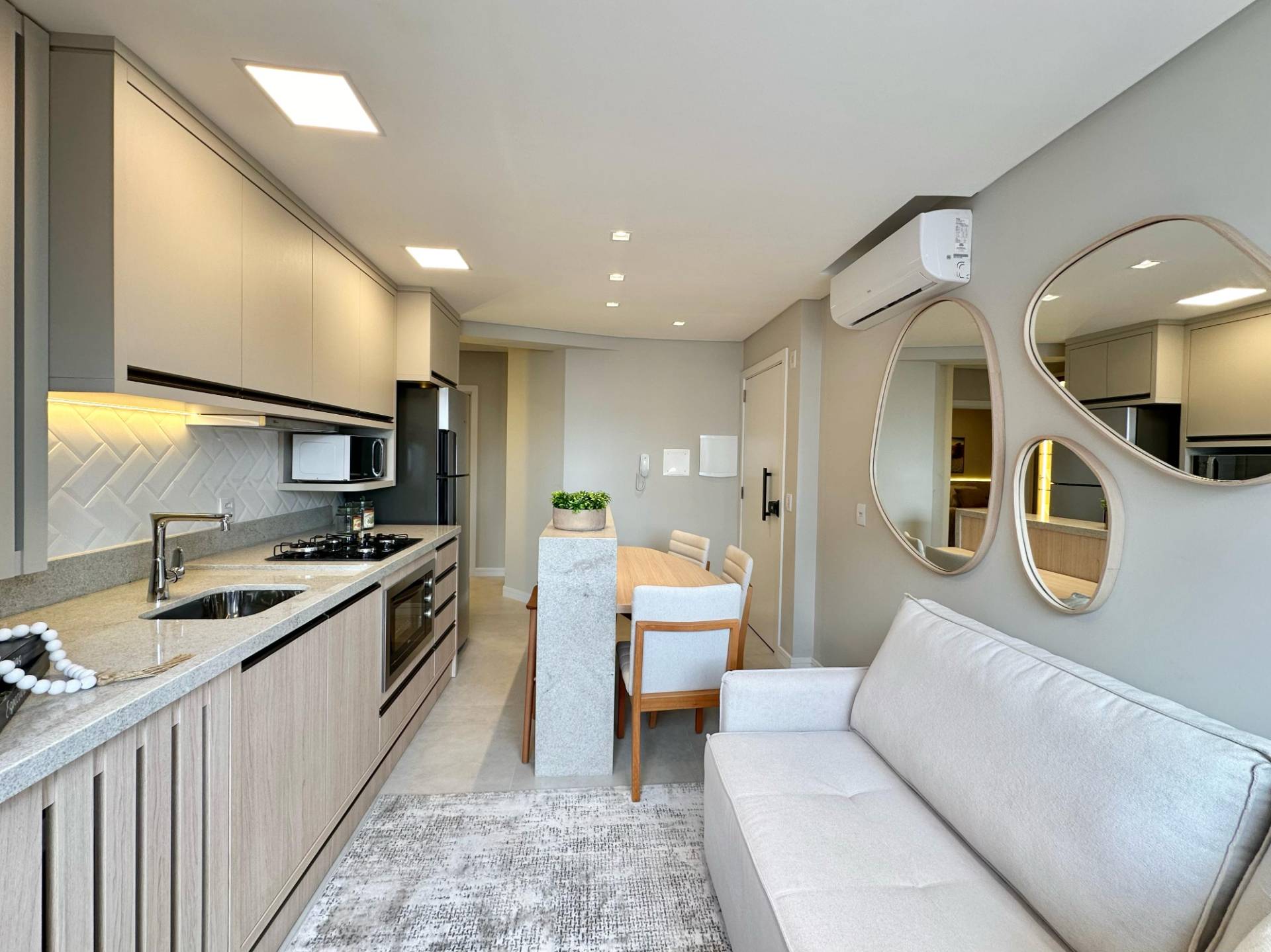 Apto finamente mobiliado e decorado a duas quadras do mar, composto por 2 dormitórios sendo uma suíte, ambientes todos integrados, cozinha, churrasqueira, splits, gás central. Prédio novo com infra estrutura completa com vista para o mar, zeladoria. Consulte um dos nossos corretores