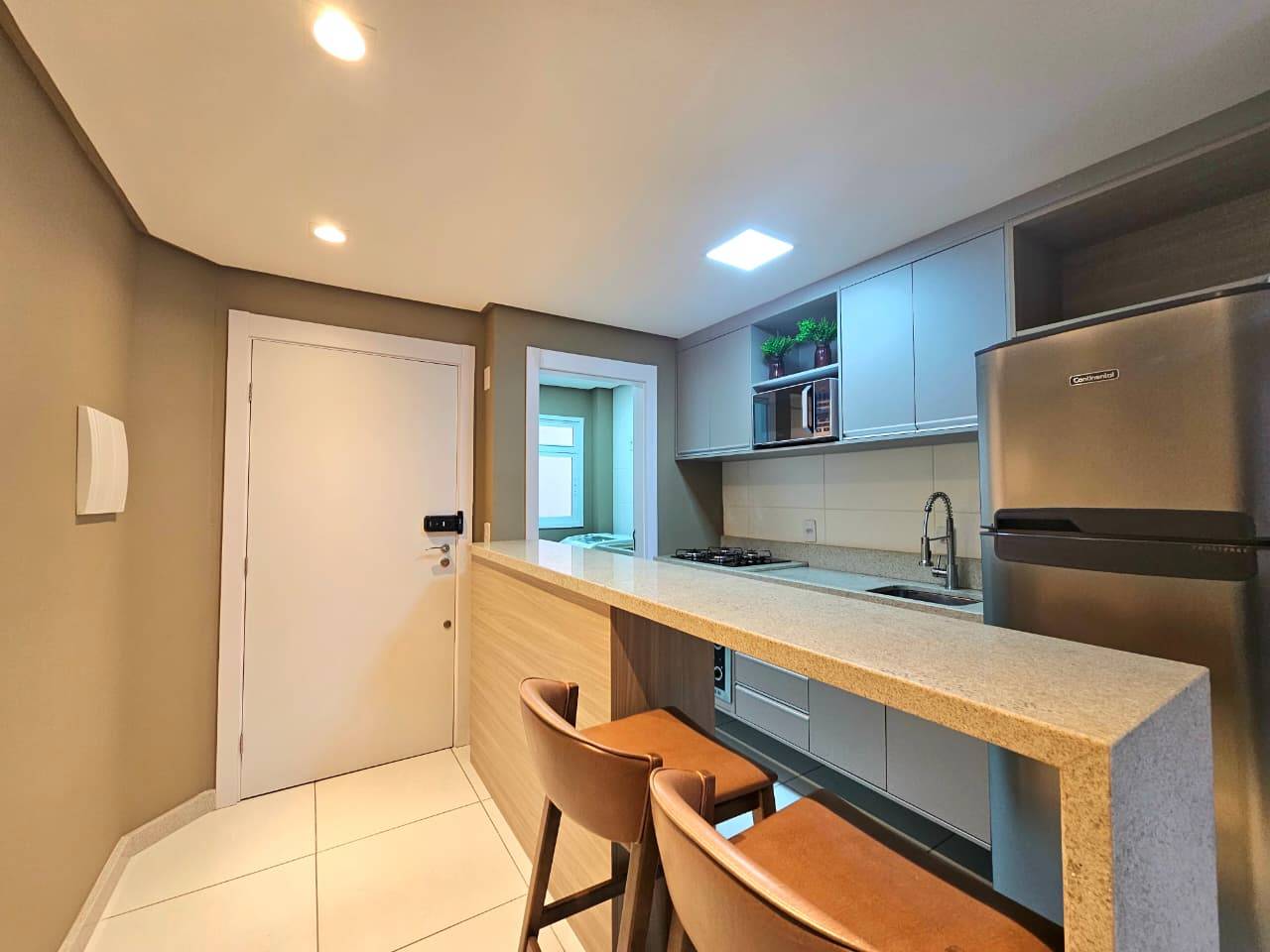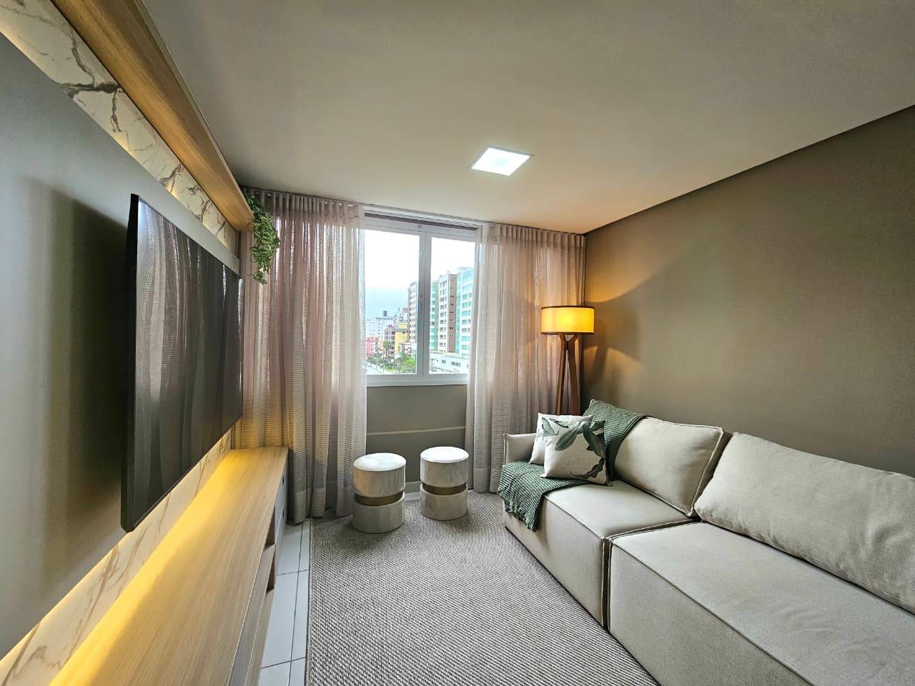 Maravilhoso apartamento mobiliado e decorado, composto de 2 dormitórios, sendo 1 suíte, contendo 1 vaga de garagem, de frente com vista para Praça Israelita, com fechadura eletrônica, ar condicionado em todos ambientes. Edifício localizado no bairro Zona Nova, com zeladoria permanente, portaria eletrônica, hall de entrada decorado, revestido 100% por pastilhas.