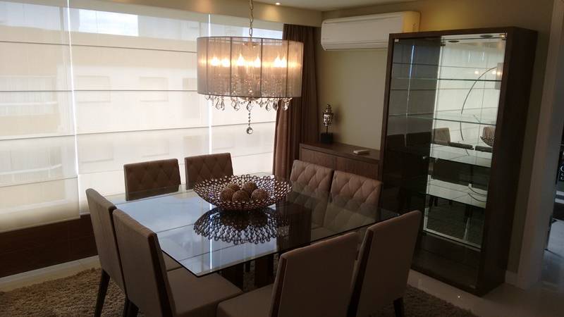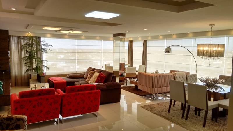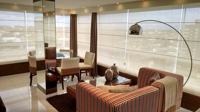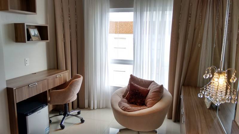 Apartamento de esquina com linda vista para mar, serra e avenida, finamente mobiliado e decorado, todo climatizado, composto por 3 amplos dormitórios, sendo 1 suíte, banho social, living em 3 ambientes, sacada de esquina integrada ao living, cozinha.