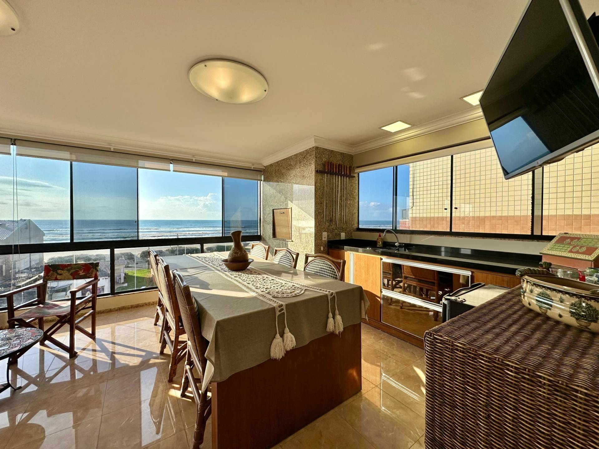 Apartamento com vista eterna para o mar junto a praça Flavio Boianovski em Capão da Canoa! Apartamento mobiliado composto por 4 dormitórios, sendo 2 suítes, dois banheiros sociais, sacada de frente com vista eterna para o mar, sala de estar e jantar, lareira, cozinha, churrasqueira, área de serviço separada, 2 vagas de garagem, mobiliado, pronto para morar/veranear. Edifício com fachada revestida em pastilhas, elevador, portão e porteiro eletrônico e com zeladoria permanente. Localização privilegiada frente mar e calçadão, junto à Praça Flávio Boianovski com canchas de bocha, quadras de vôlei, futevôlei e futebol de areia, ampla área gramada e arborizada com espaço para colocar sua cadeira de praia, sentar e saborear um delicioso chimarrão enquanto as crianças brincam no playground e junto a todos os recursos que a cidade oferece. Agende agora mesmo uma visita com um de nossos corretores!