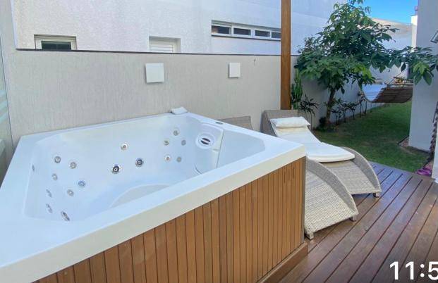 Sobrado no condomínio Condado de Capão, mobiliado com móveis Líder de Novo Hamburgo e finamente decorado, composto por 3 suítes completas sendo uma delas máster com banheira de hidromassagem, pé direito alto e amplo living. Acabamento AAA, porcelanato 80X80 grande polido, granitos absoluto e marrom imperial, esquadrias PVC com isolamento acústico; casa no centro do terreno, bem ventilada com pátio ao redor; três suítes completas, suíte máster com banheira de hidromassagem; mobiliada, decorada com projeto de arquiteta, móveis Líder de Novo Hamburgo; sala espaçosa, área social com espaço gourmet integrado; spa Jacuzzi externa; churrasqueira com varanda e pergolado em madeira de lei; cozinha com bancada em revestimento em pau Brasil (vindo da Bahia) e azulejos portugueses, móveis sob medida e iluminação na bancada. Condomínio de alto padrão e com uma infra de lazer completa, localizado a poucos minutos do centro de Capão da Canoa e junto a todos os recursos da cidade.