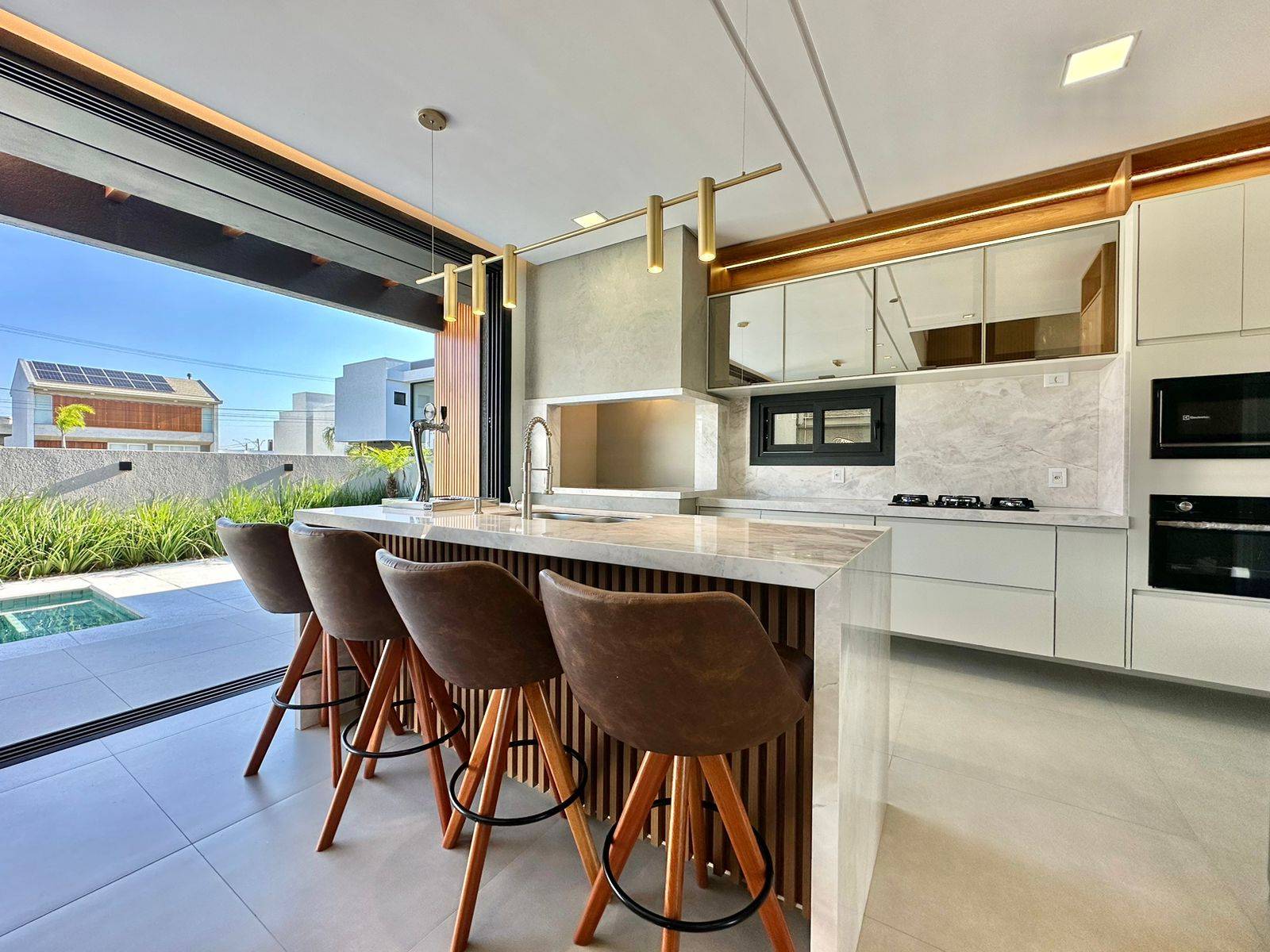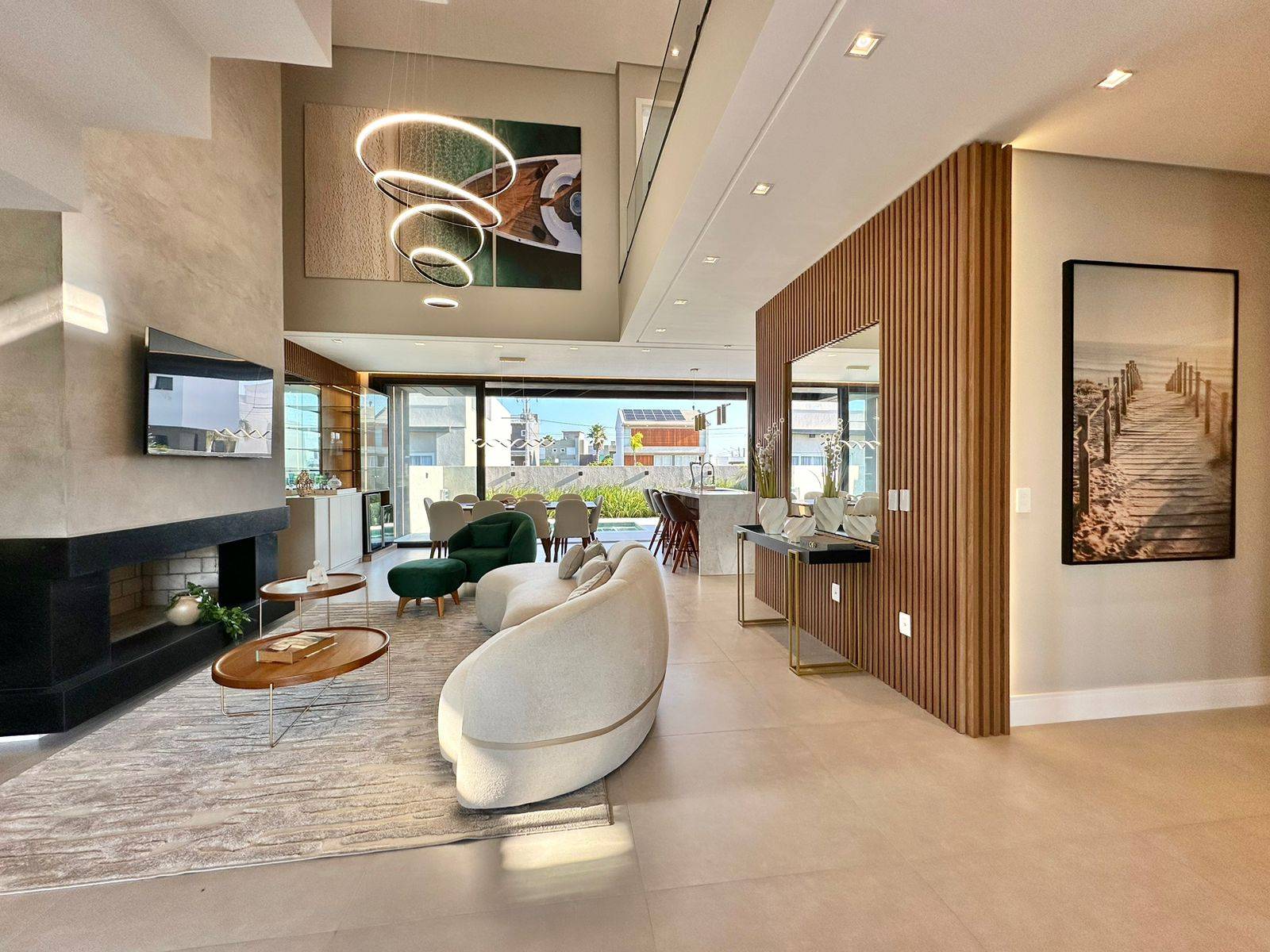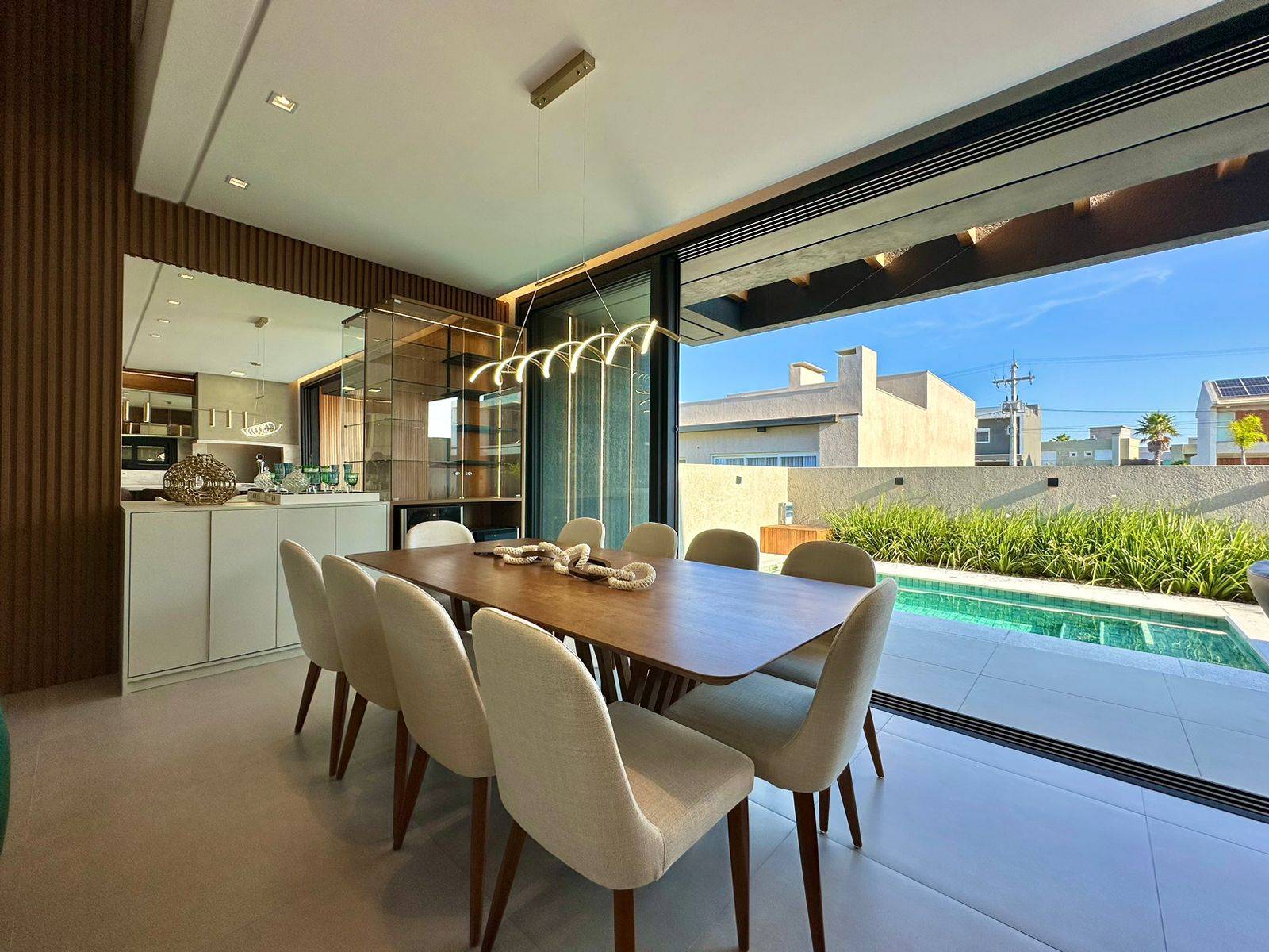 Incrível sobrado com excelente padrão construtivo à venda no Condomínio Sunset em Xangri-Lá. Altíssimo padrão construtivo, excelente localização, com 241m² privativos, com 04 suítes (1master e 1 térrea). Living com 03 ambientes, pé-direito duplo, lareira, lavabo, cozinha americana, espaço gourmet com churrasqueira, área de serviço, home office, piscina e vaga para carro!
