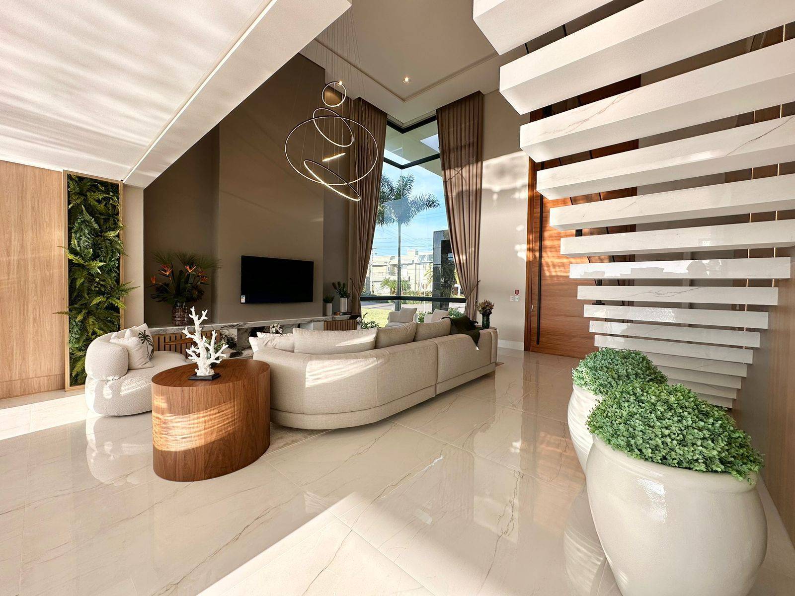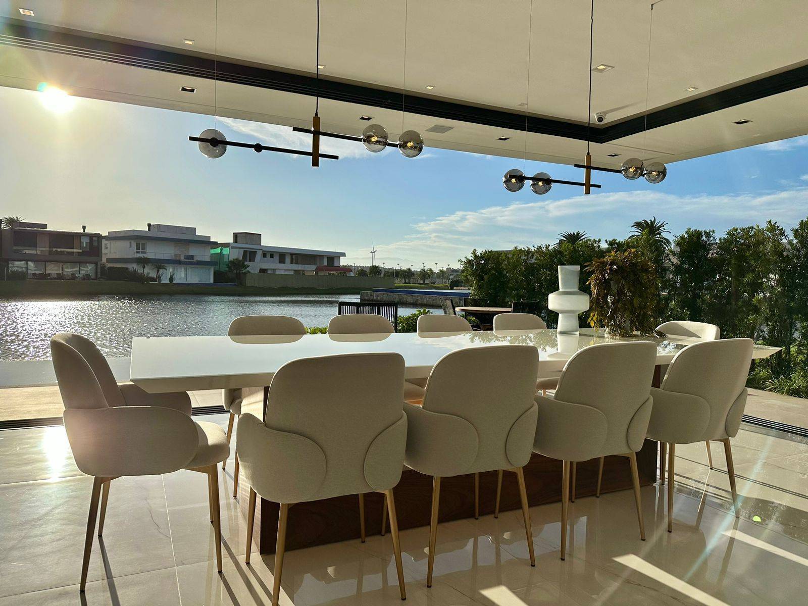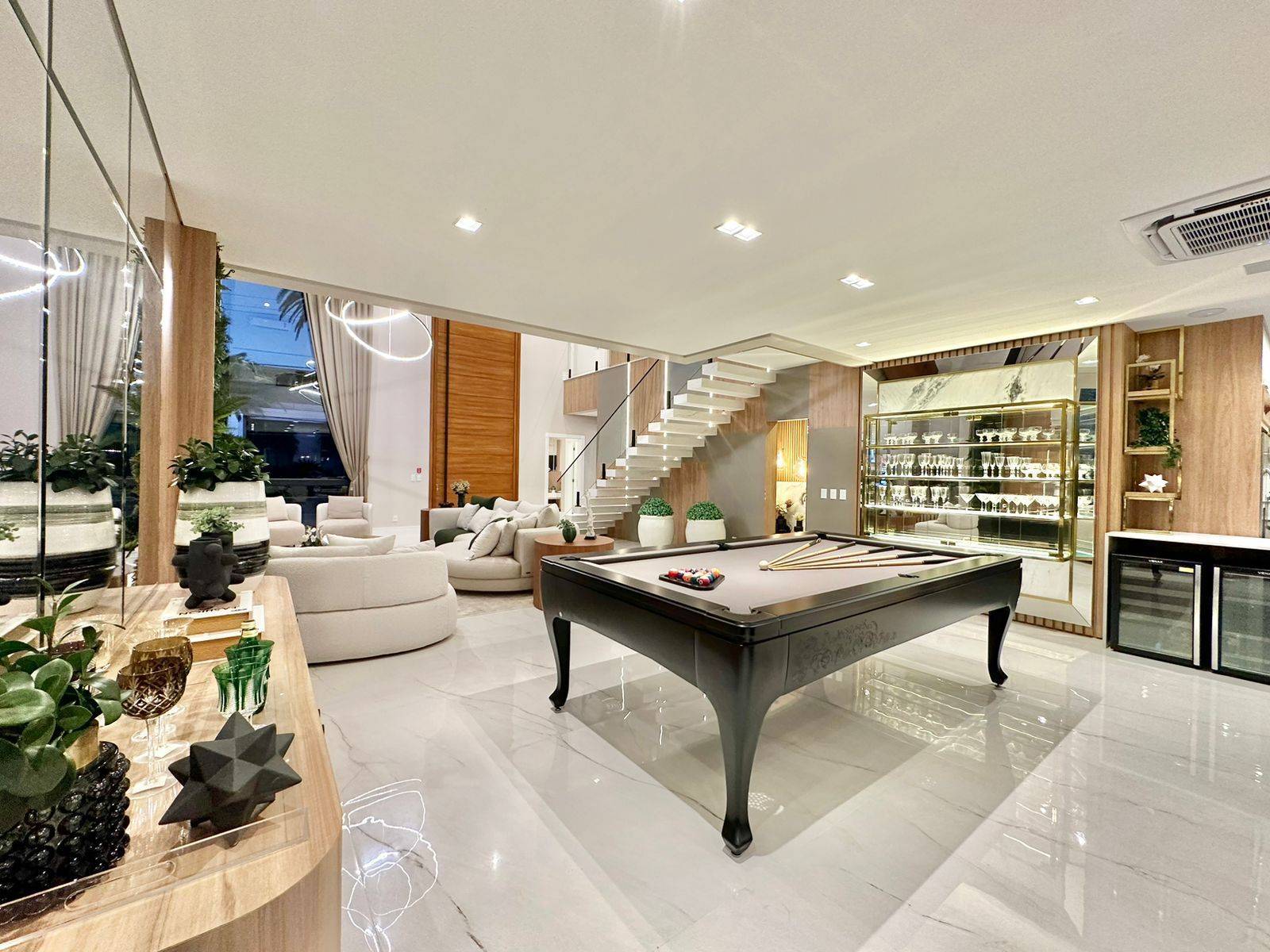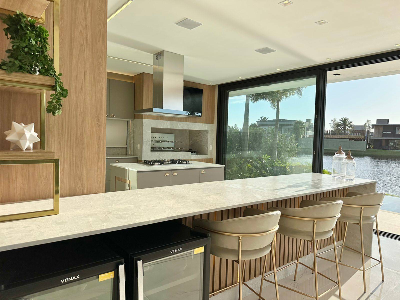Sobrado no condomínio fechado Enseada lagos, com 426m² de área, 5 suítes (máster e térrea), lavabo, piscina de concreto com borda infinita e cascata, sala de jantar, sala de estar, espera para sistema fotovoltaico, jardim com irrigação automatizada, dependência de empregada, cinema, kids ou home office, abrigo para 2 carros, gourmet integrado a área de lazer, espera para automação, depósito externo fechado, espera para elevador, posição solar e localização privilegiada. Previsão de entrega outubro 2022, sendo Mobiliada e decorada.