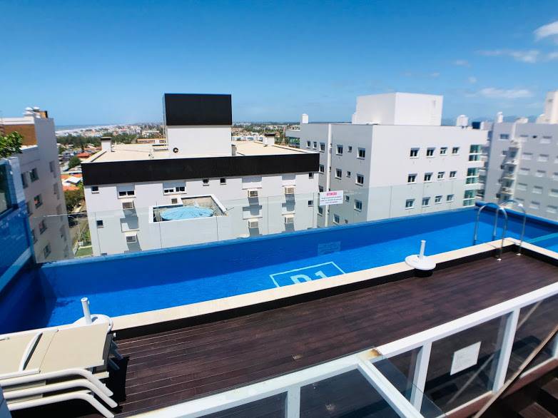 Lindo apartamento na divisa de Atlântida bairro Navegantes, finamente mobiliado e decorado, com 3 dormitórios, 1 suíte, living com 2 ambientes, cozinha, área de serviço, churrasqueira, 1 boxes/vaga para carro, ambientes climatizados, piso em porcelanato e sacada de frente. Edifício alto padrão, hall finamente decorado, 2 elevadores, completa infraestrutura de lazer: Piscina, salão de festas, espaço kids e telhado verde. Equipado com água quente, gás central, hidrômetro individual.