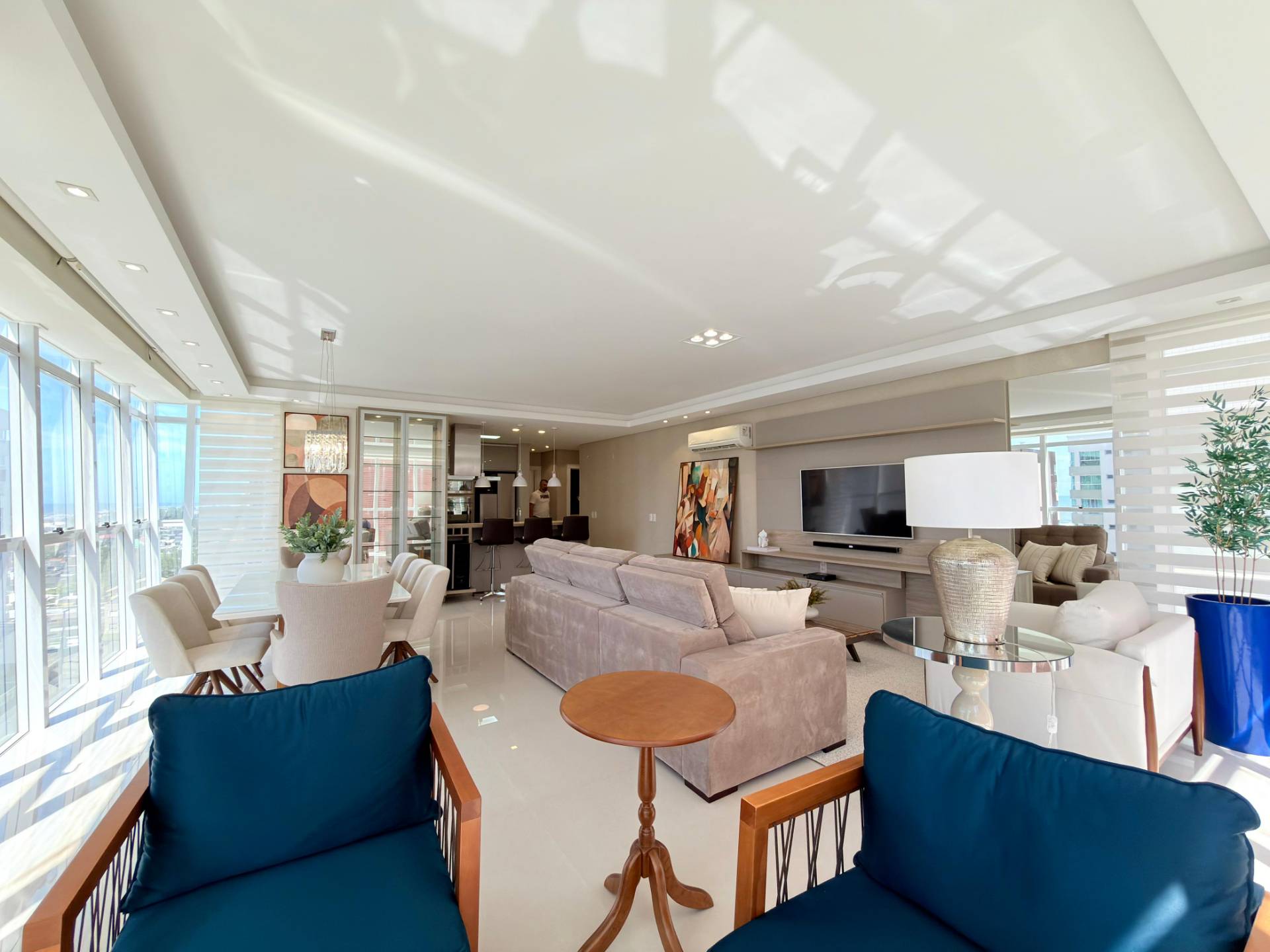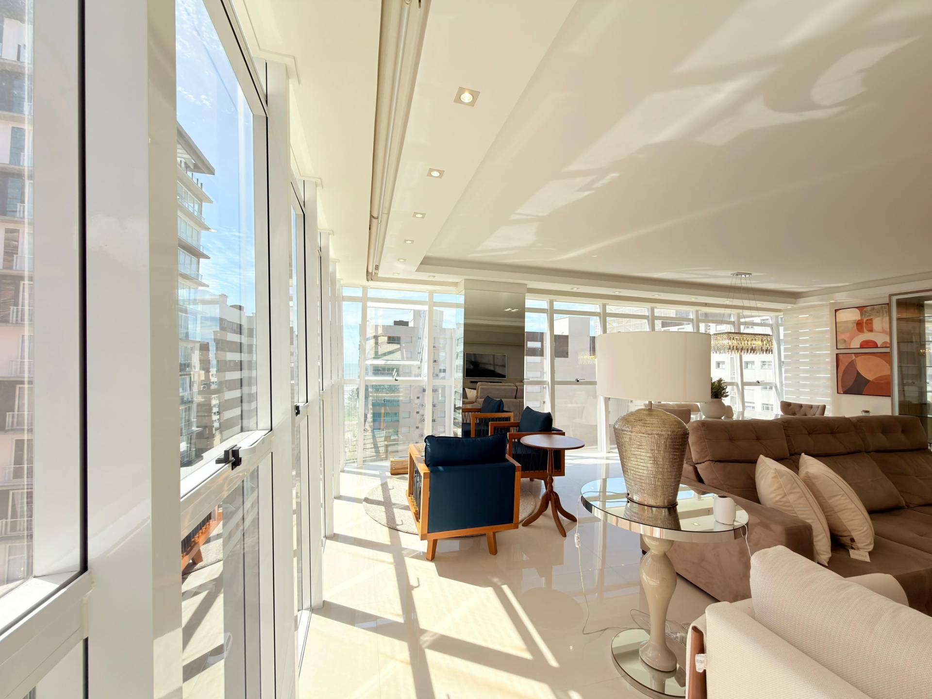 Apartamento de frente, mobiliado e decorado, em edifício com infraestrutura completa de lazer, em Capão da Canoa! Composto por três dormitórios, sendo uma suíte, banho social, lavabo, amplo living três ambientes com pé direito elevado, sacada de frente com churrasqueira, cozinha americana, área de serviços e 2 box de estacionamento individuais mais deposito. Apartamento mobiliado e decorado, alto padrão de acabamentos, piso porcelanato, ar condicionados splits e junker já instalados, pronto para veranear/morar! Edifício de luxo, conceito, com fachada inclinada, toda em pele de vidro, hall de entrada com pé direito elevado, finamente decorado, 2 elevadores, gás central, hidrômetro individual, porteiro eletrônico, monitoramento por câmeras, zeladoria permanente e infraestrutura de lazer completa: piscina e solarium, salão de festas, sala de jogos e academia. Agende uma visita com um de nossos corretores