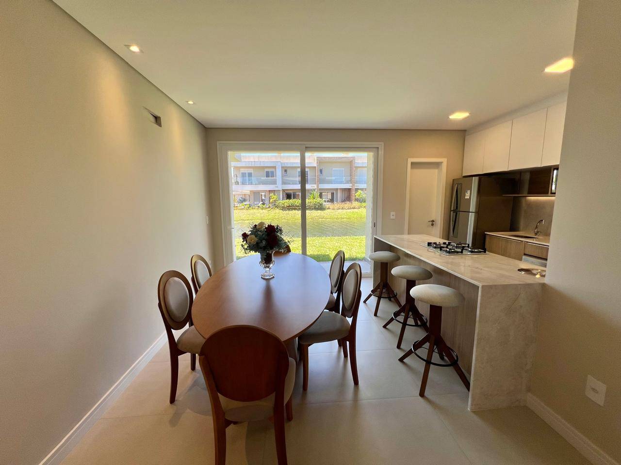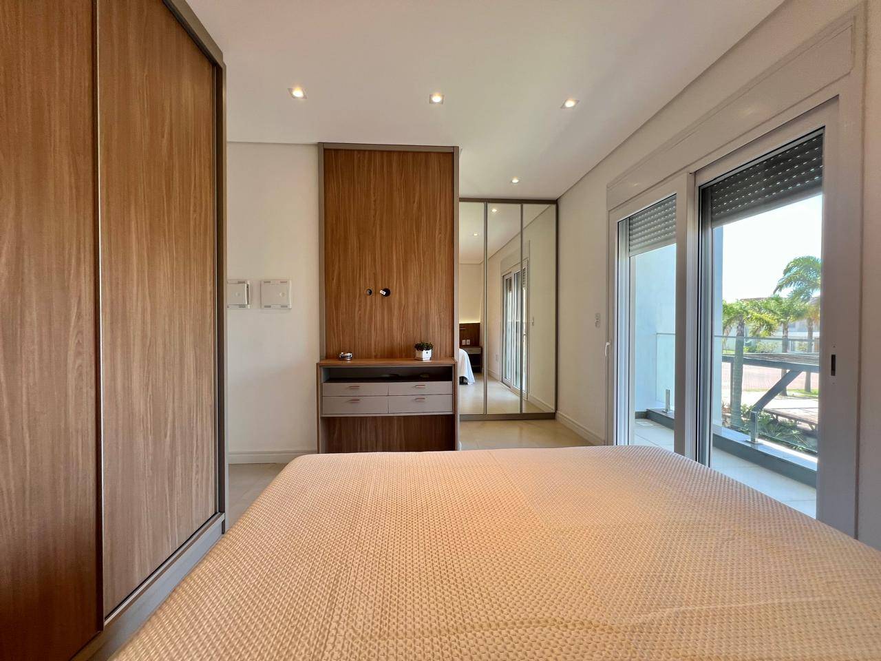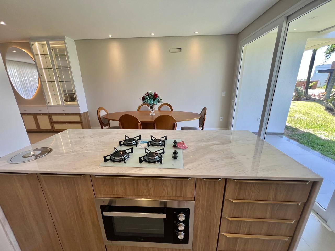 Sobrado de alto padrão com 143, 33 m², pronto e entregue em 2021, localizado em beira lago, oferecendo uma experiência única de conforto e sofisticação. O imóvel conta com 03 dormitórios, sendo 01 suíte, living integrado em 03 ambientes, excelente iluminação natural e persianas automatizadas, valorizando ainda mais os espaços. Totalmente mobiliado, possui 56 pontos de iluminação já instalados, lareira ecológica, cozinha equipada com lava-louças, adega e acabamento de alto nível em todos os detalhes. Dispõe ainda de estacionamento para 2 veículos, unindo funcionalidade, elegância e uma vista privilegiada em um só lugar.