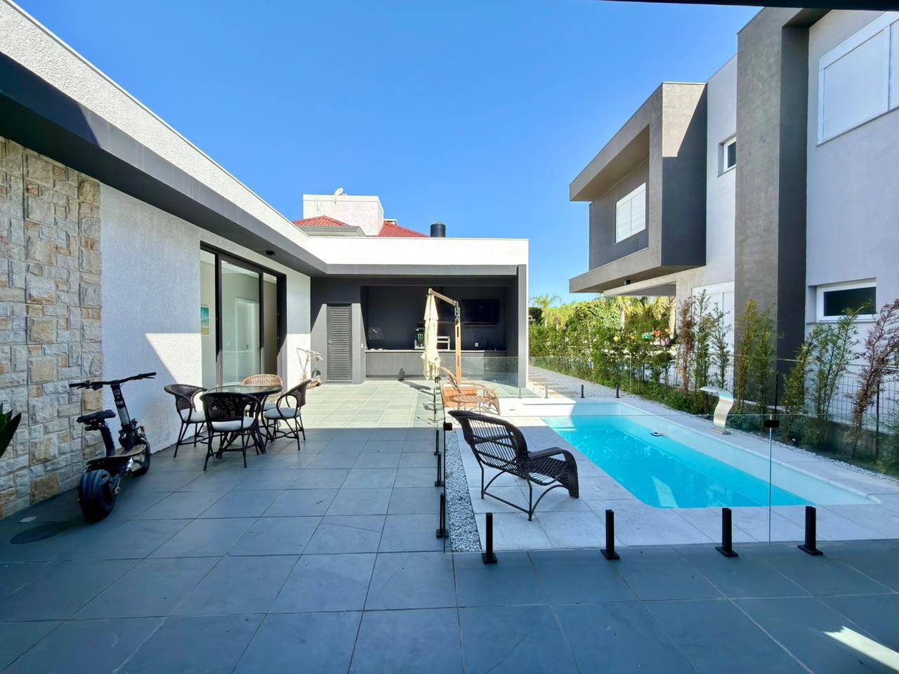 Viva a experiência única de ter a Lagoa dos Quadros como extensão do seu quintal. Localizada no cobiçado Condomínio Velas da Marina, esta casa espetacular foi pensada para famílias que não abrem mão de espaço, privacidade e de um estilo de vida focado no bem-estar e nos esportes náuticos no litoral. Com um projeto arquitetônico imponente, a residência oferece um layout inteligente que valoriza o convívio social sem perder a intimidade. O amplo living com lareira se integra de forma harmoniosa à sala de jantar e ao espaço gourmet, criando o ambiente definitivo para receber amigos e celebrar os melhores momentos do verão. Na área íntima, o conforto é absoluto: são 4 suítes independentes e espaçosas. Cada dormitório foi projetado para ser um verdadeiro refúgio de descanso, garantindo total comodidade e privacidade para os moradores e seus convidados.